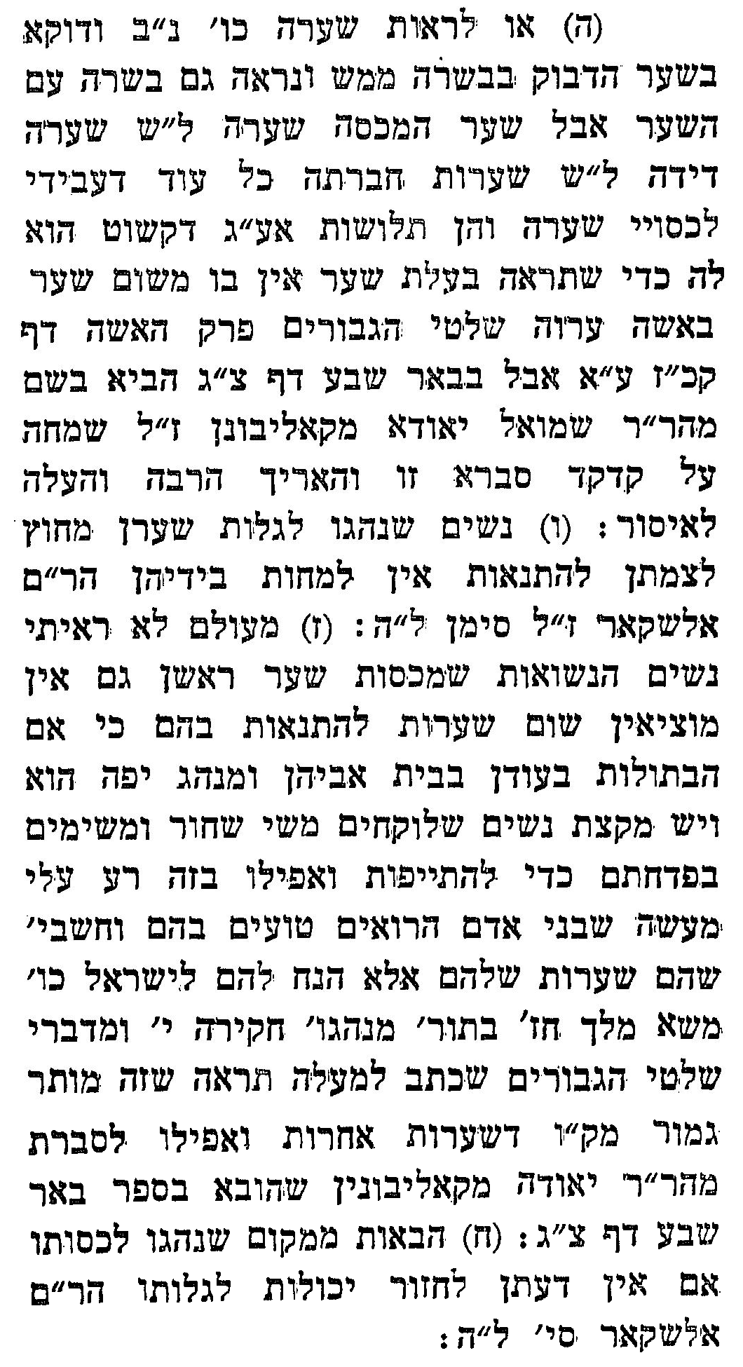 ט. ואיזוהי דת יאודית יוצאה וראשה פרוע כו' נ"ב הנשים היוצאות בכיסוי שערות שלהם ובמקום